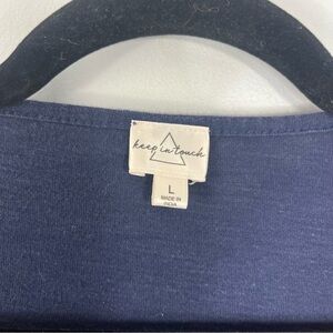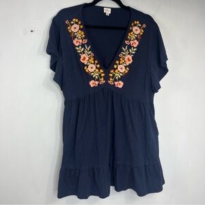 Keep in Touch Size Large Cotton Floral Embroidered Tunic Blouse Navy II5
