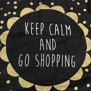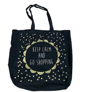 Keep Calm And Go Shopping Graphic Cotton Black Gold Tote Bag One SZ #1115