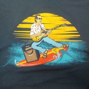 Sweet graphic of Joe Bonamassa surfing while playing guitar.