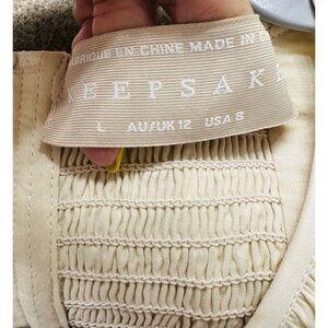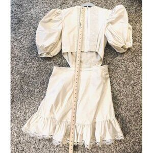 Keepsake Asymmetric Beige Short Puffy Sleeves Open Cut Waist Ruffled Hem Dress 8