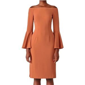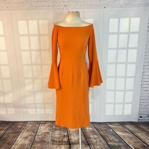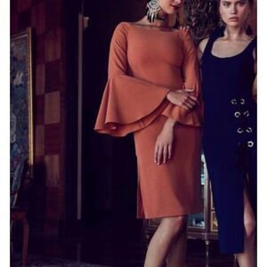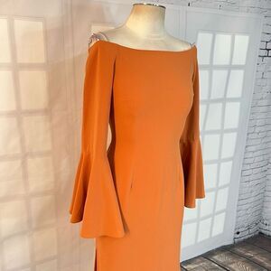 Keepsake Harmony Bell Sleeve Off the Shoulder Terracotta Slit Midi Dress Size S