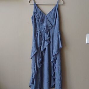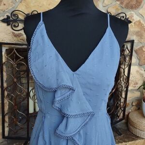 Keepsake Hideaway Blue Hydrangea Ruffled Midi Dress Sz L