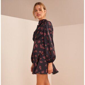 Keepsake The Label INFINITY LONG SLEEVE MINI DRESS BLACK W POMEGRANATE DITSY