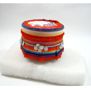 About 4 inch tall x 5 wide. The box is covered with vintage fabric pieces and old jewelry. These charming boxes are designed to not only store your precious items but also to add a touch of vintage elegance or fun to your space I have several styles - please check out my store!