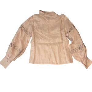 Keepsake Linen Lace Button-Up Blouse XS Tan Long Sleeve Resort NWT