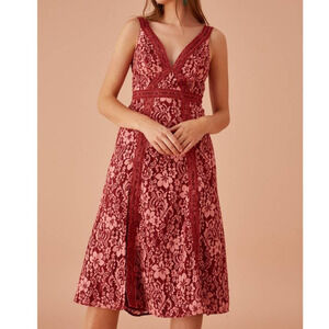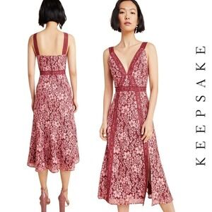 Keepsake NWT Holder Lace Detail v-Neck Rose Midi Party Dress Size 8