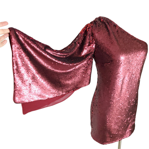 Keepsake No Signs Dress S Berry Sequin One Shoulder Mini Shift New