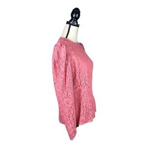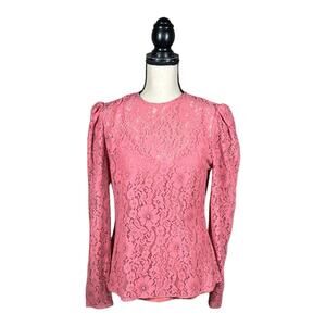 Keepsake The Label All Night Lace Top With Cami New With Tags size large. Has slight puff shoulders. Keyhole back with button and loop. Detachable under layer cami with adjustable straps. Outer is 43% cotton, 38% polyamide, 15% viscose, 4% other fibers. Shell is 100% polyester. Measures approximately 17” armpit to armpit, and 23” in length. New with tags.
