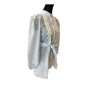 Keepsake The Label Blue Stripe Bow Balloon Sleeve Mini Dress XS
