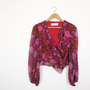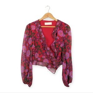Keepsake The Label Cropped Floral-Print Wrap Blouse Size M