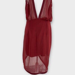 Keepsake The Label Curious Sheer Cocktail Dress Halter Red Sleeveless Wrap XL