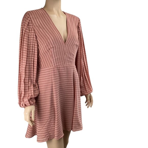 Keepsake The Label Dress Size Large Pink A Line Fit & Flare Long Sleeve V-Neck M