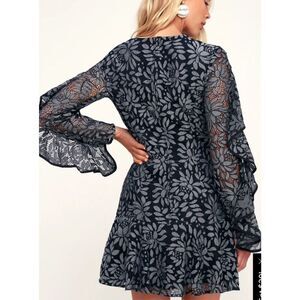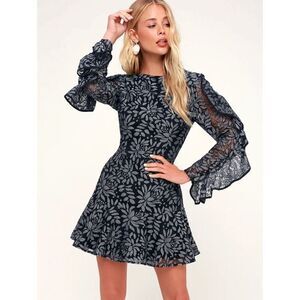 Keepsake The Label Dresses Engage Navy Blue Lace Long Sleeve Mini Dress Large