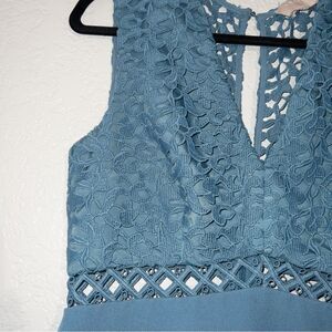 Keepsake The Label Dusty Blue Uplifted Mini Lace Dress Size Medium