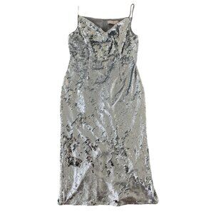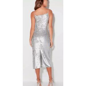 Keepsake The Label No Signs Midi Dress Silver Sequin Size XL New Years Formal