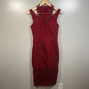 Keepsake Uplifted Midi Dress Size XS Burnt Red Lace Formal Event Wedding Guest