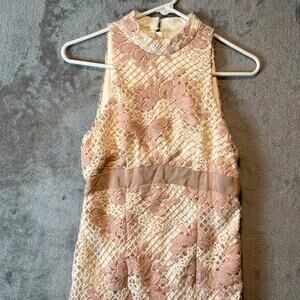 Keepsake Women's No Air Crochet Lace Midi Dress Ivory Blush Pink Floral 4 New from a smoke free home