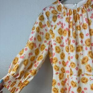 Keepsake Yellow Pink Floral Short Sleeve Midi Dress Size Medium