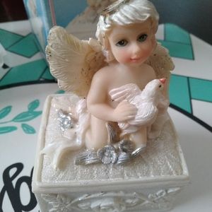 White and silver Angel keepsake box. Measurements not exact.