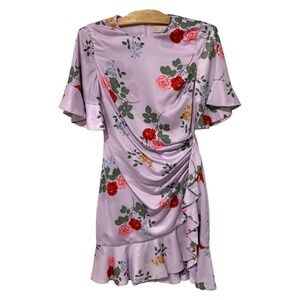Keepsake the Label | Dress Mini Floral Short Sleeve Ruffles Purple- Size Small