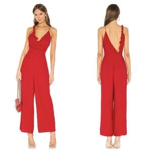 Keepsake the Label Bright Red Forget You Asymmetrical Ruffle Wide Leg Jumpsuit