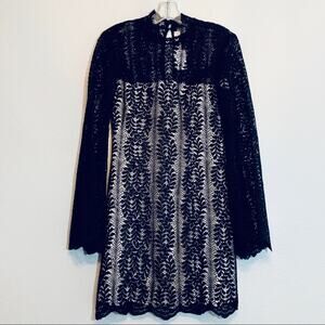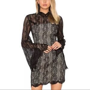 Keepsake the Label Uptown bell sleeve black lace overlay dress size Small NWT