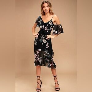 Keepsake the label women’s Cosmic Girl Black Floral Print Midi Dress size Medium