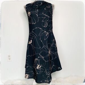 Gorgeous floral print mini dress by keepsake the label. Features high straight neckline and asymmetrical bottom hem. Looks great with lace up heels or more casual with flats. Lying flat armpit to armpit approx 16.5” across and top of shoulder to bottom hem approx 36” at lowest point. All measurements are approximate