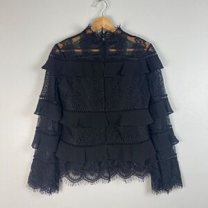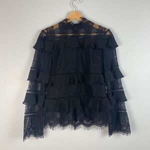 Every bit alluring, this long sleeve Keepsake top features ornate openwork lace, ruffled tiers and scalloped trim for a refined take on romance.