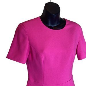 This dress is a darker pink than the stock photos show. Fuschia not hot pink