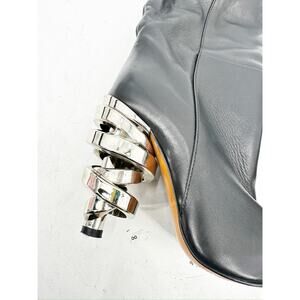 Keeyahri Zerina Silver Ribbon Heel OTK Boots Black Leather 36.5