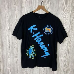 Keith Haring Artist Signature Art Black Graffiti Short Sleeve T-Shirt Men's L