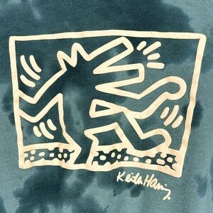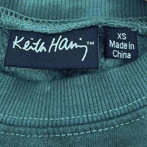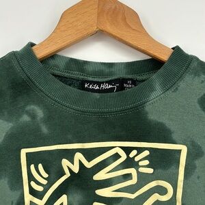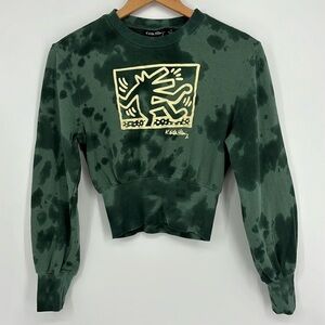 Keith Haring Cropped Wide Ribbed Graphic Green Tie Dye Sweatshirt Womens Size XS