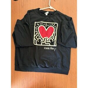 Classic Keith Haring Heart graphic sweatshirt in black, size Medium. Features a bold front print licensed by the Keith Haring Foundation. Soft 60% cotton / 40% polyester fleece blend. Gently worn with no major flawssome normal light lint from wear. Clean and ready to ship.