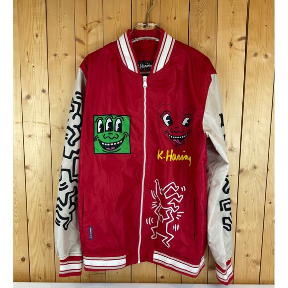 Keith Haring Members Only Full-Zip Graphic Design Jacket, Red/Cream - Size M