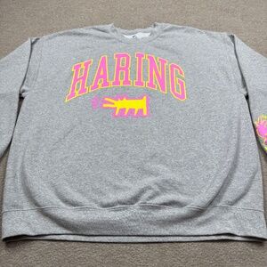 Keith Haring Sweatshirt Women's Size XL Gray Pullover Dog Graphic Casual