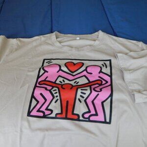 Keith Haring Tan T-Shirt With Heart Graphic. Sizes XL