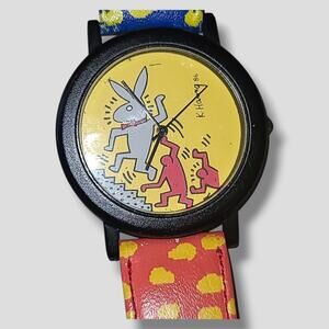 Keith Haring Watch 1986 Pop Art Vintage Collectible Bunny & Figures Rare Strap