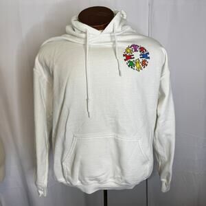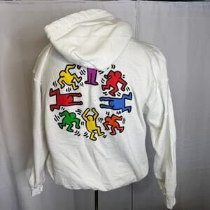 Keith Haring White Hoodie Dancing Figures Graphic Pullover Art Sweatshirt Large