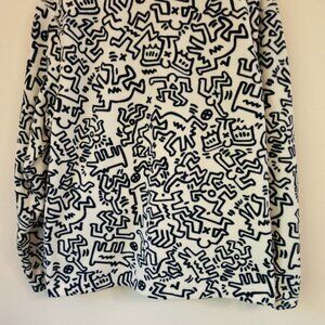 Keith Haring x H&M Fleece Jacket White &Navy Doodle Unisex Adult M Urban Artsy