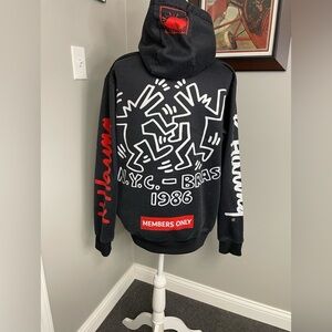 Keith Haring x Members Only Sweatshirt Hoodie Black White Size Medium
