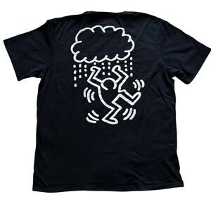 Keith Haring x Shoe Palace Black Short Sleeve Tee Shirt Embroidered Keith Haring Signature Heart Peeking Out of Pocket