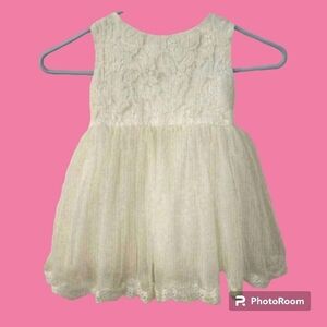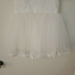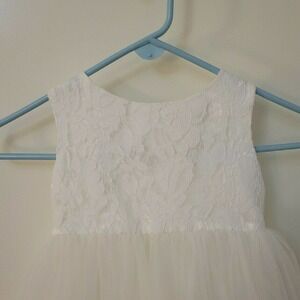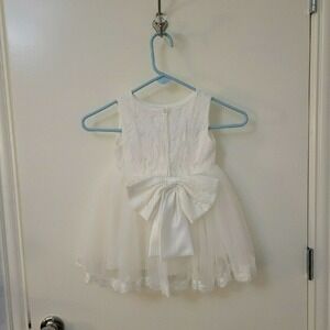 Really pretty white lace and tulle dress with removable satin and lace bow. Nice for baptism, formal or wedding. Would make a beautiful flower girl dress.