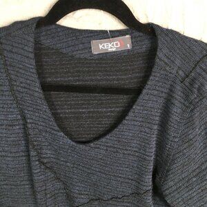 Kekoo Design 1 Sweater Womens 1X Plus Size Blue Black Lagenlook Artsy Tunic