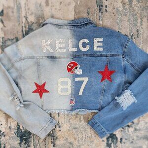 Kelce KC Chiefs 2 tone Jean Jacket