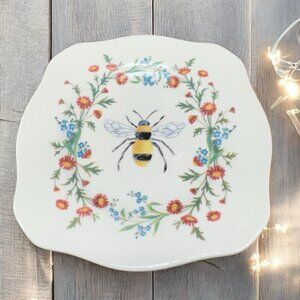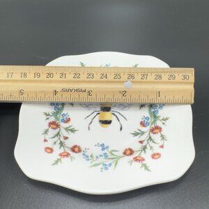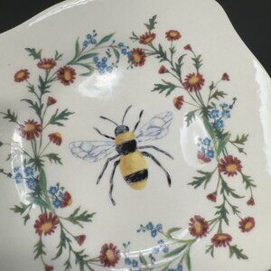 Kellie Montana Ceramic Trinket Dish Plate With Bee Floral Pattern Whimsical Dish