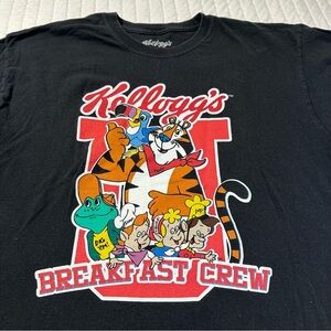 Celebrate your favorite breakfast characters with this Kellogg's black short sleeve tee. Perfect for casual wear.
