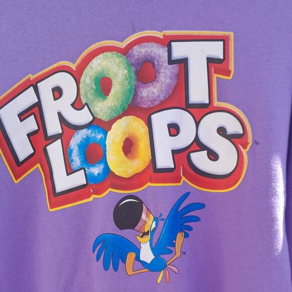 Style: Pullover hoodie with a large front graphic logo and smaller colorful Froot Loops graphics down both sleeves