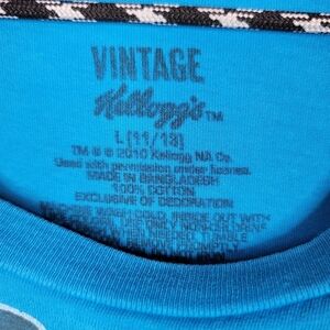 Vintage look tee-shirt with Fruit Loops Toucan Sam and the text "Rise and Shine." 100% cotton. Good pre-owned condition. Only flaw is a small mark on the back of one sleeve (see last photo). Approximate measurements: 16.5" chest, 23.5" length.