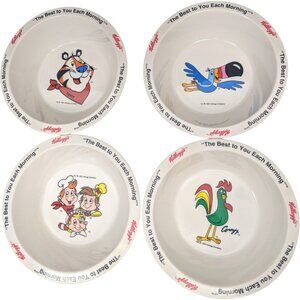 Kellogs Cereal Bowls Plastic Tony The Tiger Toucan Sam Corny Snap 1995 Vtg